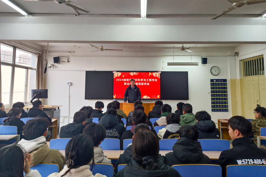 在2号楼307举办职业生涯规划宣讲会。2024级防灾减灾科学与工程专业全体同学参加。