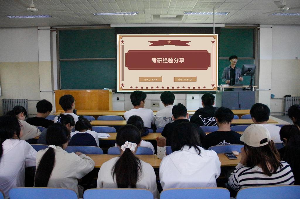 在3号楼201举办2025届毕业生考研经验分享会第1期。准研究生防灾减灾2021级1班范丙珂和防灾减灾2021级2班张详贺主讲,学院非毕业班同学积极参加。